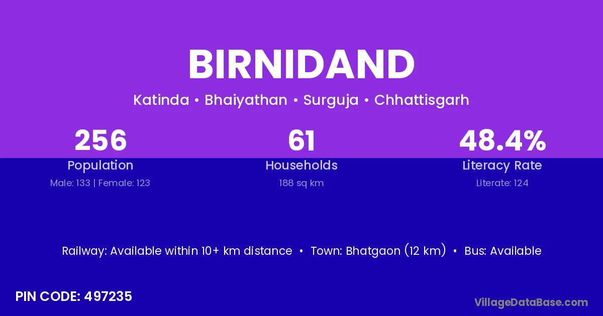 Birnidand village is located in the Bhaiyathan Tehsil of the Surguja district in Chhattisgarh .