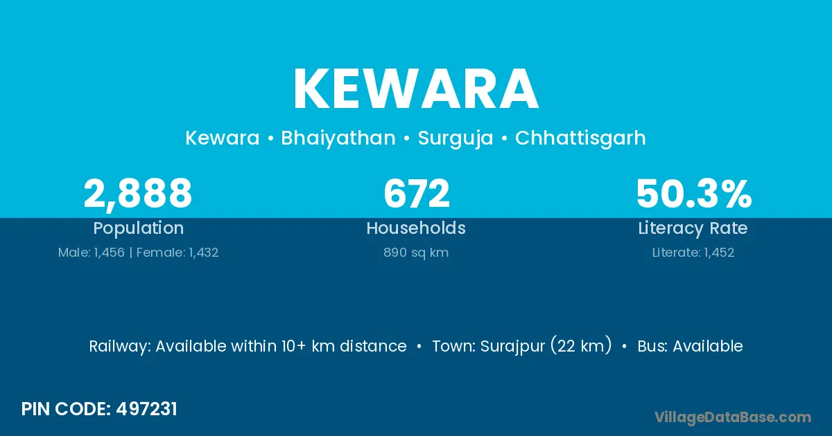 Kewara village is located in the Bhaiyathan Tehsil of the Surguja district in Chhattisgarh .