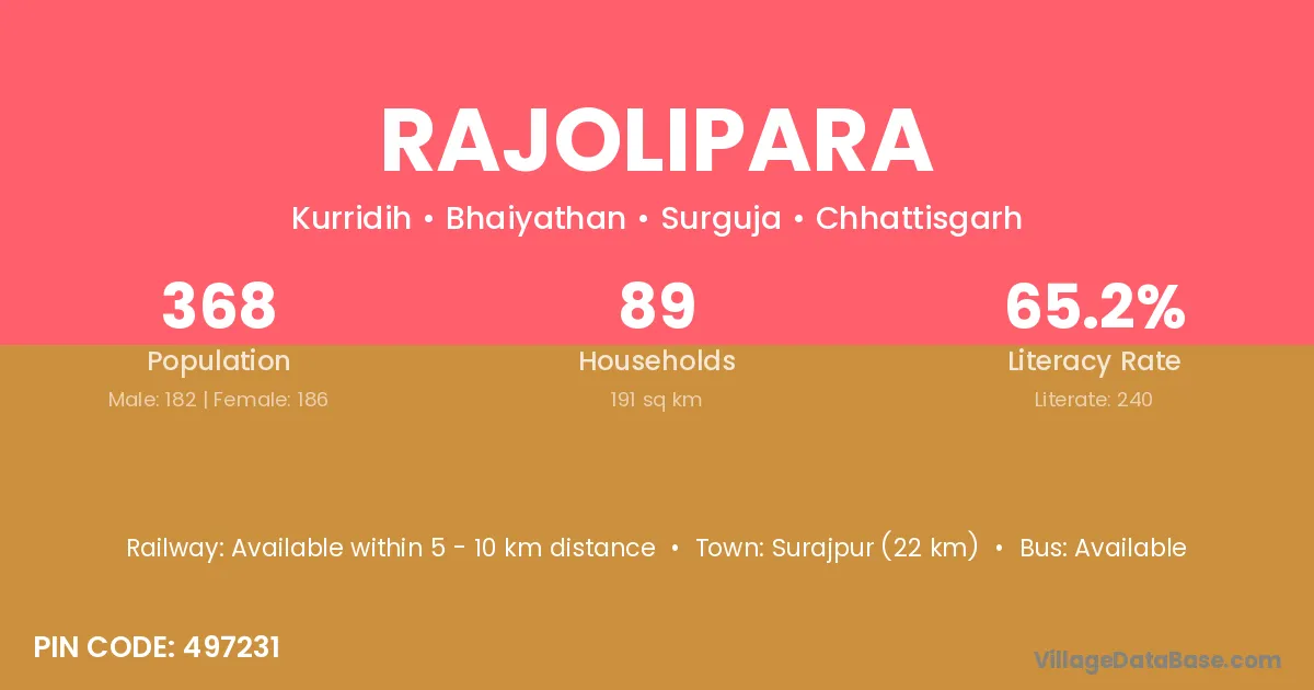 Surajpur (22 km) is the nearest town to Rajolipara village for major economic activities and is located approximately 22 km away.