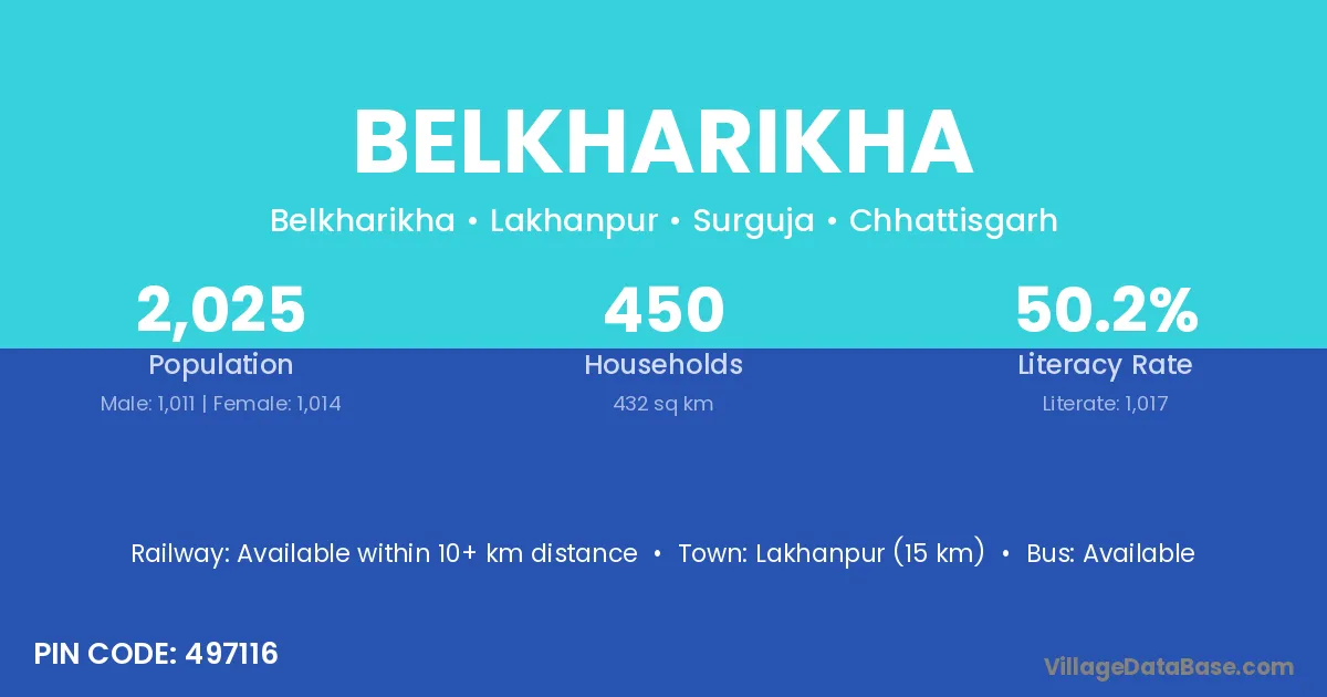 Belkharikha village is located in the Lakhanpur Tehsil of the Surguja district in Chhattisgarh .