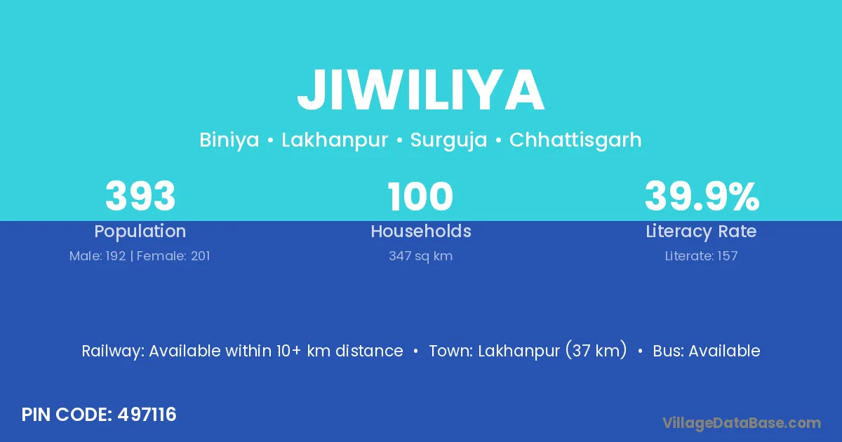 Lakhanpur (37 km) is the nearest town to Jiwiliya village for major economic activities and is located approximately 37 km away.