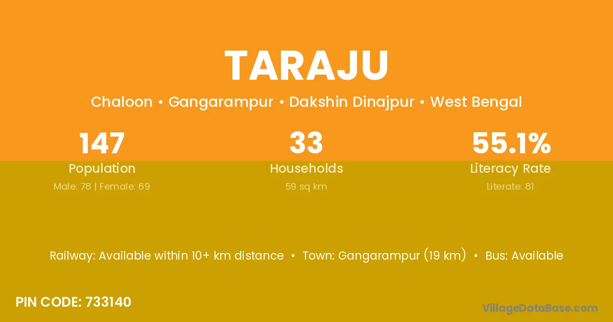 Lakhanpur (12 km) is the nearest town to Taraju village for major economic activities and is located approximately 12 km away.