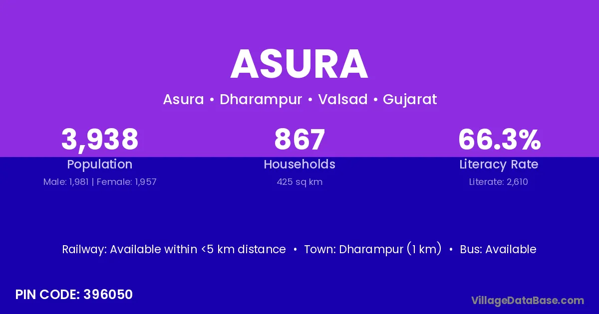 According to Census 2011 information, the village code of Asura village is 497231.