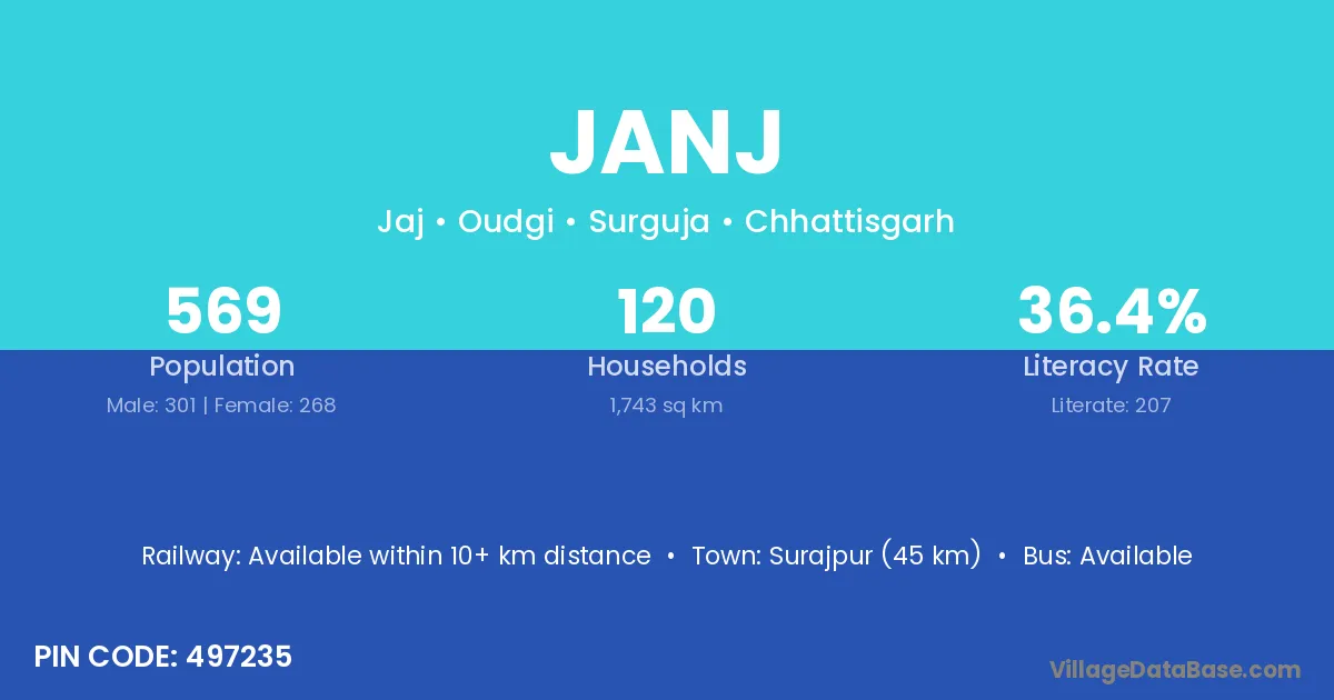 Surajpur (45 km) is the nearest town to Janj village for major economic activities and is located approximately 45 km away.