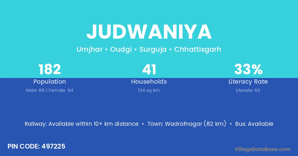 Wadrafnagar (82 km) is the nearest town to Judwaniya village for major economic activities and is located approximately 82 km away.