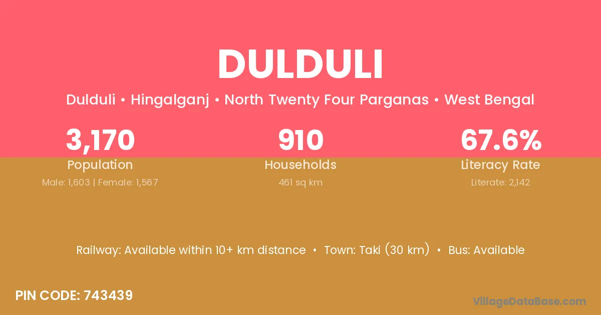 Pratappur (42 km) is the nearest town to Dulduli village for major economic activities and is located approximately 42 km away.