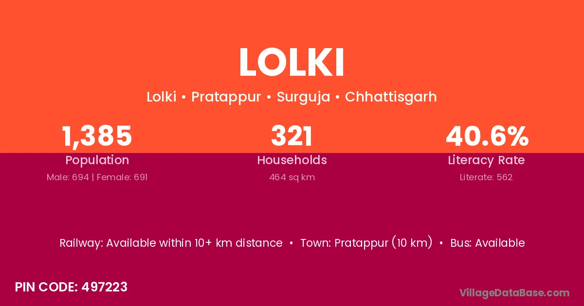 Lolki village is located in the Pratappur Tehsil of the Surguja district in Chhattisgarh .