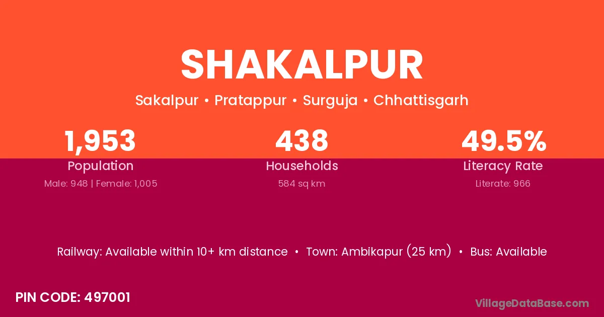 Ambikapur (25 km) is the nearest town to Shakalpur village for major economic activities and is located approximately 25 km away.