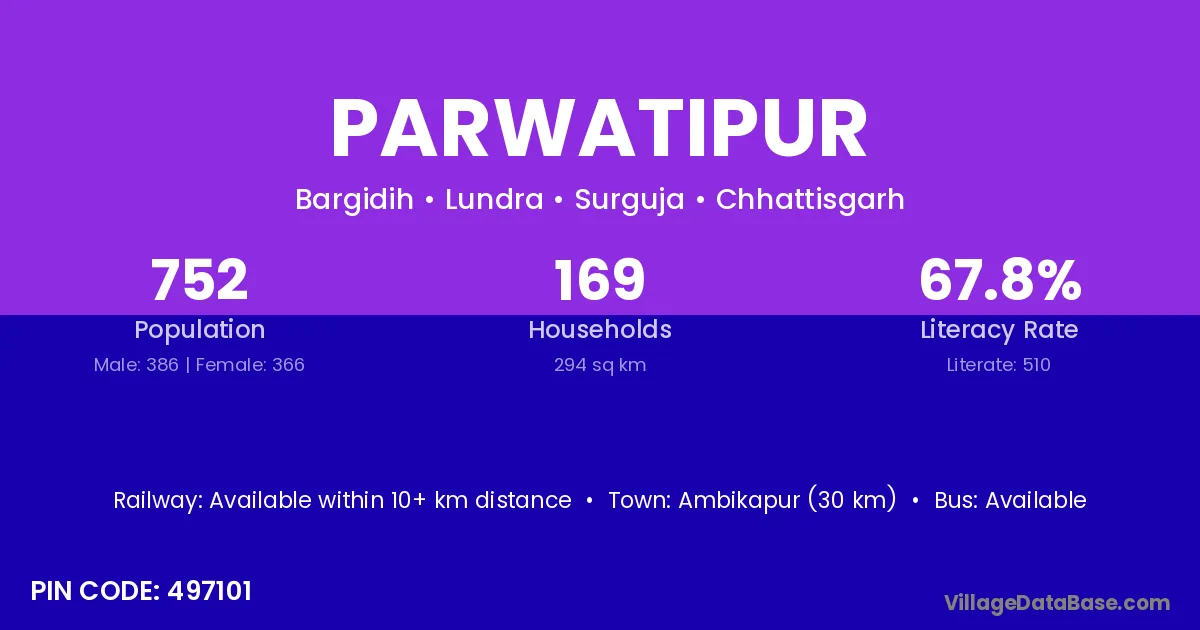 According to Census 2011 information, the village code of Parwatipur village is 497116.