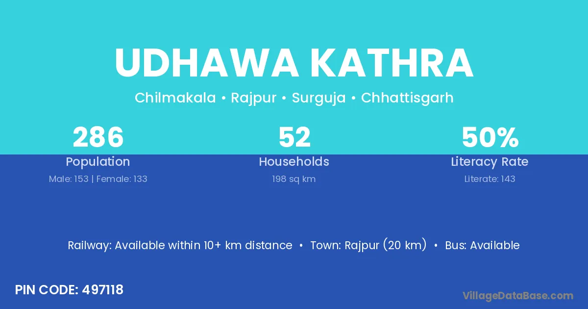 According to Census 2011 information, the village code of Udhawa Kathra village is 497118.