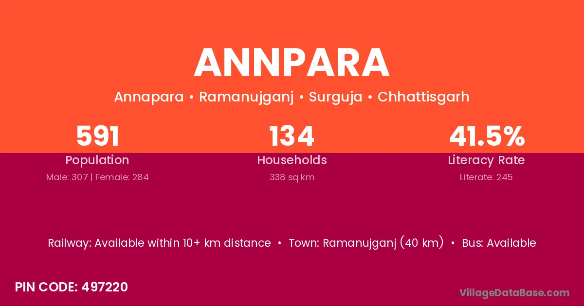 Annpara village is located in the Ramanujganj Tehsil of the Surguja district in Chhattisgarh .