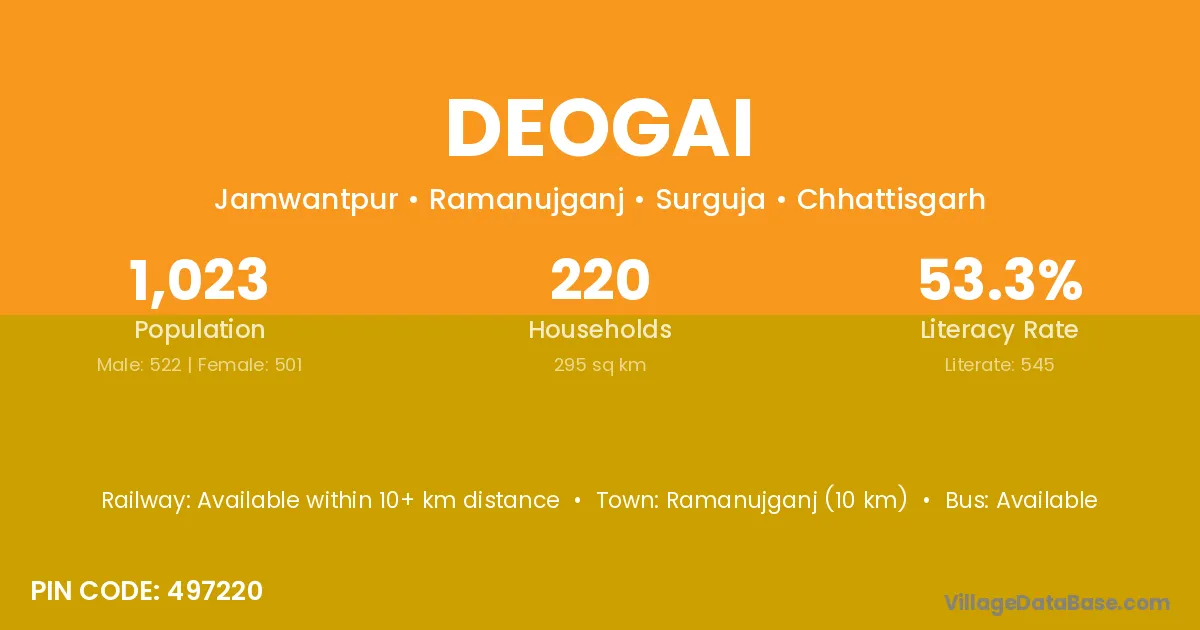 Ramanujganj (10 km) is the nearest town to Deogai village for major economic activities and is located approximately 10 km away.