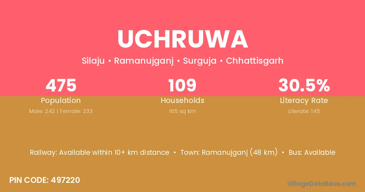 Ramanujganj (48 km) is the nearest town to Uchruwa village for major economic activities and is located approximately 48 km away.