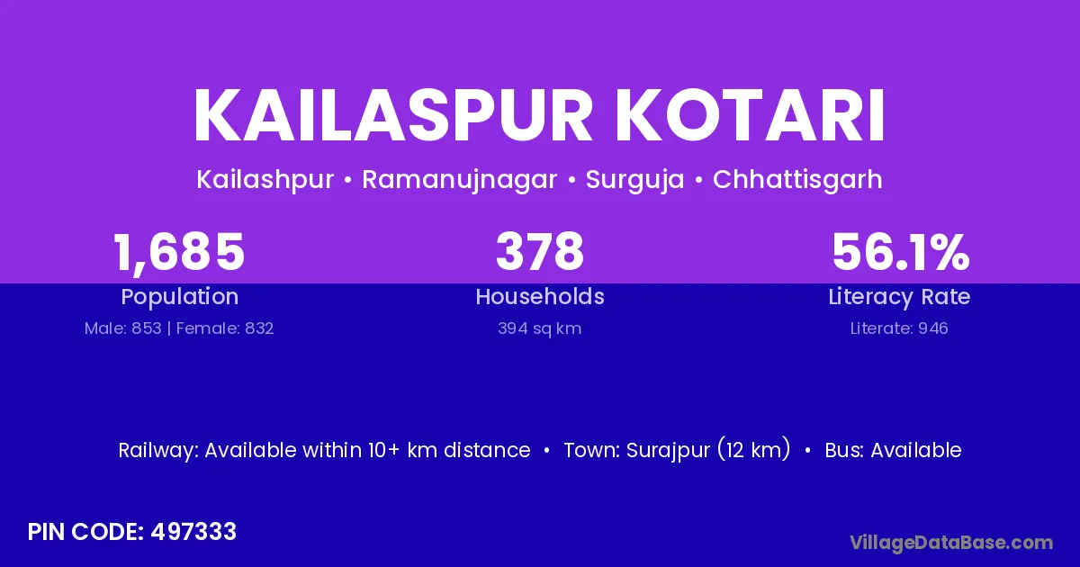 Surajpur (12 km) is the nearest town to Kailaspur Kotari village for major economic activities and is located approximately 12 km away.
