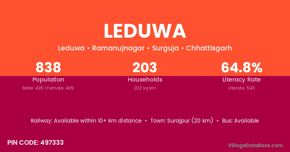 Surajpur (20 km) is the nearest town to Leduwa village for major economic activities and is located approximately 20 km away.