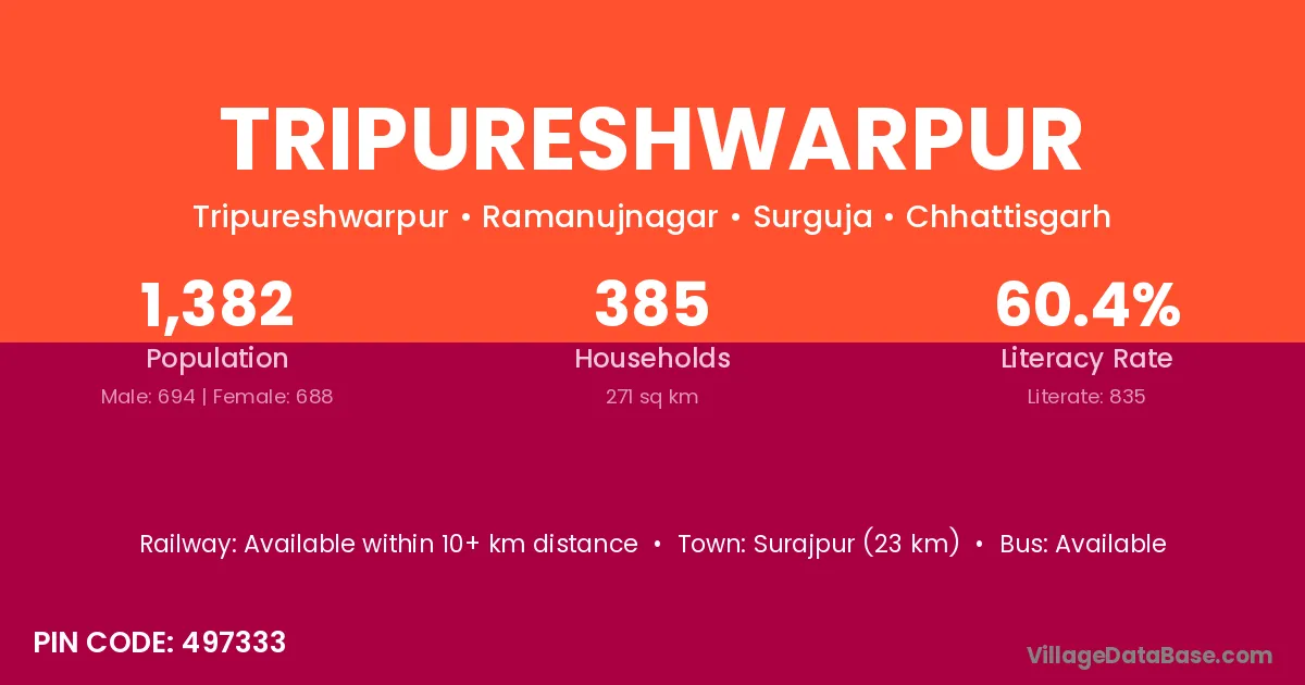 According to Census 2011 information, the village code of Tripureshwarpur village is 497333.