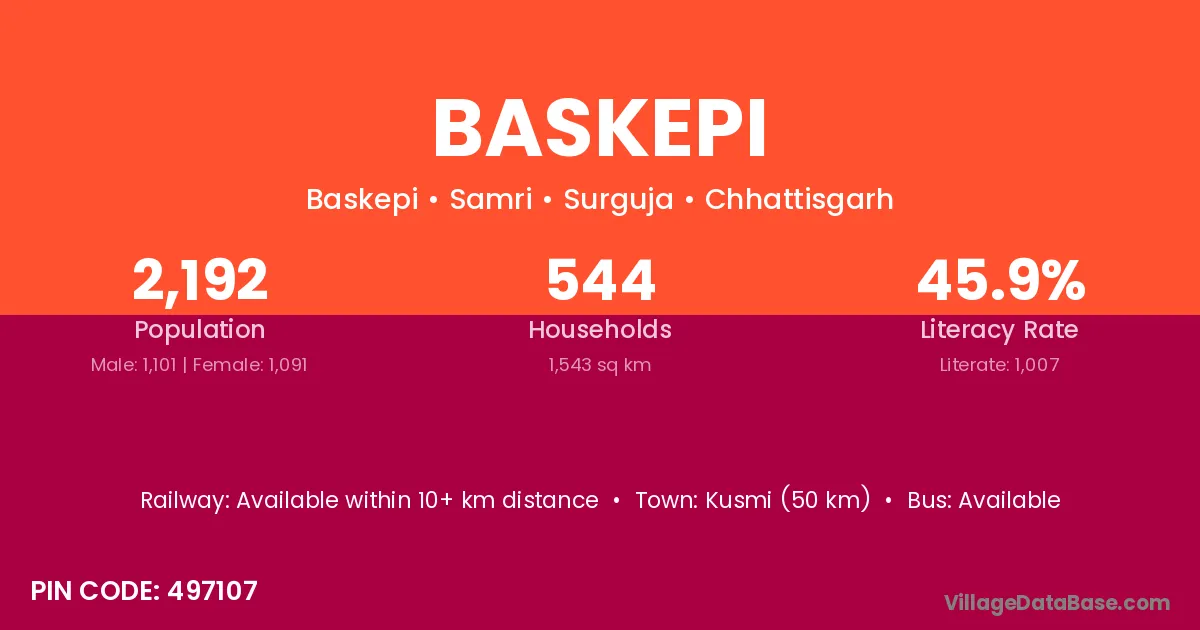 According to Census 2011 information, the village code of Baskepi village is 497107.