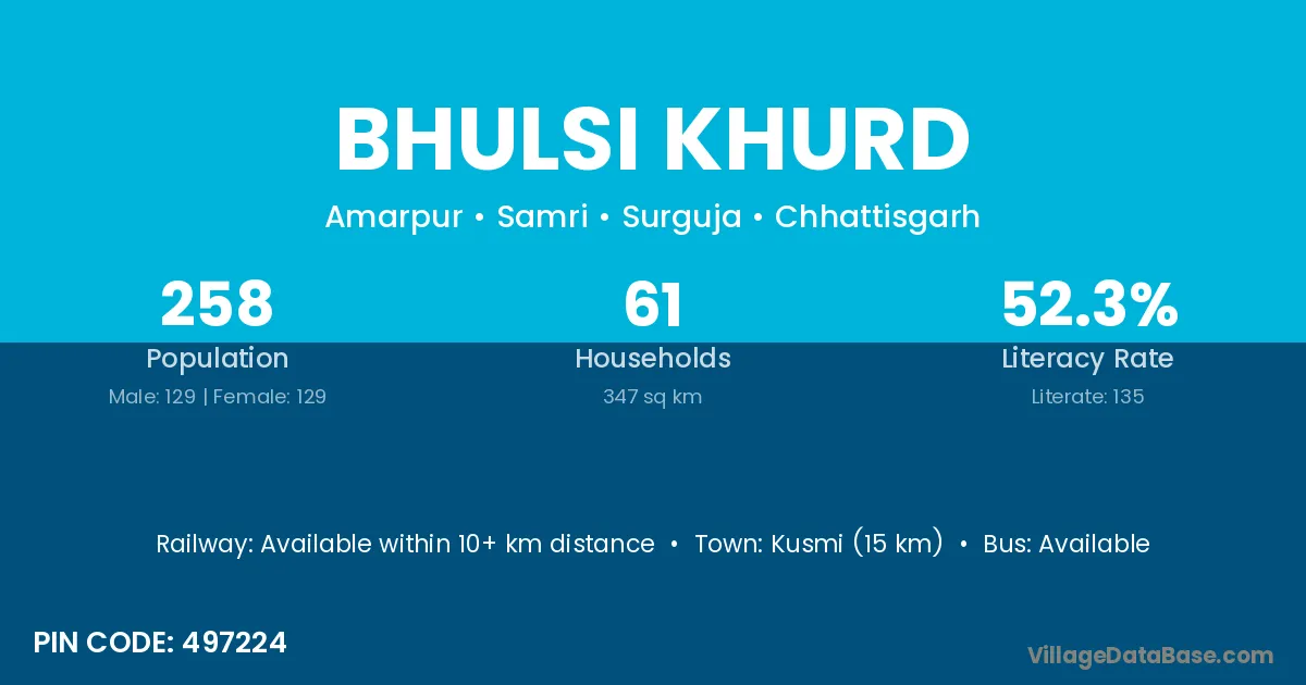 According to Census 2011 information, the village code of Bhulsi Khurd village is 497224.