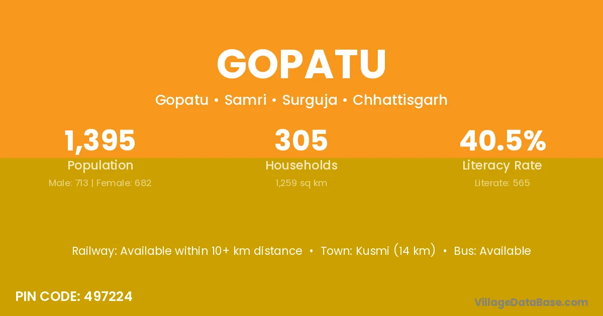 Gopatu village is located in the Samri Tehsil of the Surguja district in Chhattisgarh .