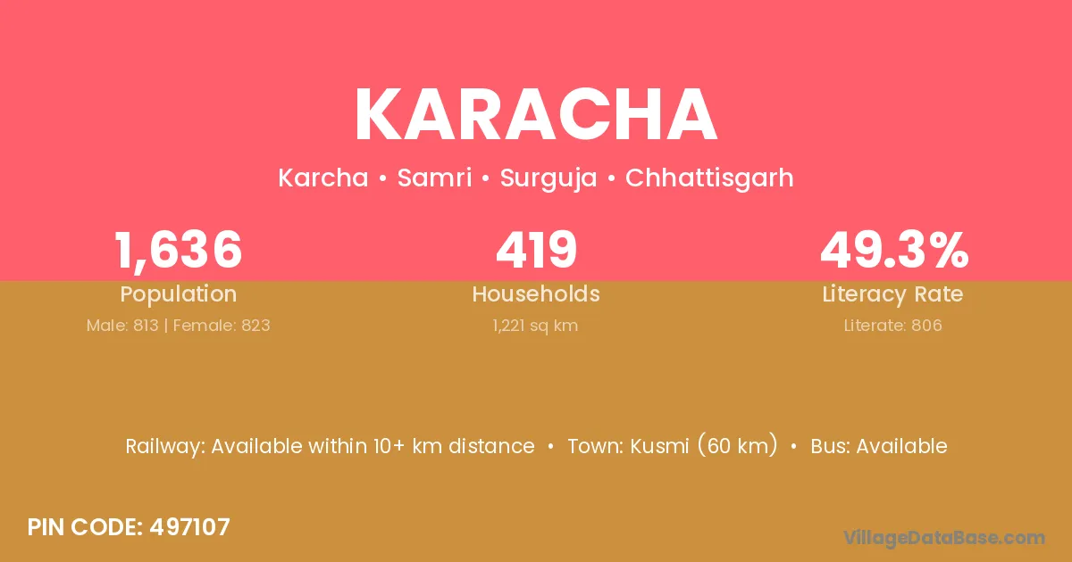 According to Census 2011 information, the village code of Karacha village is 497107.