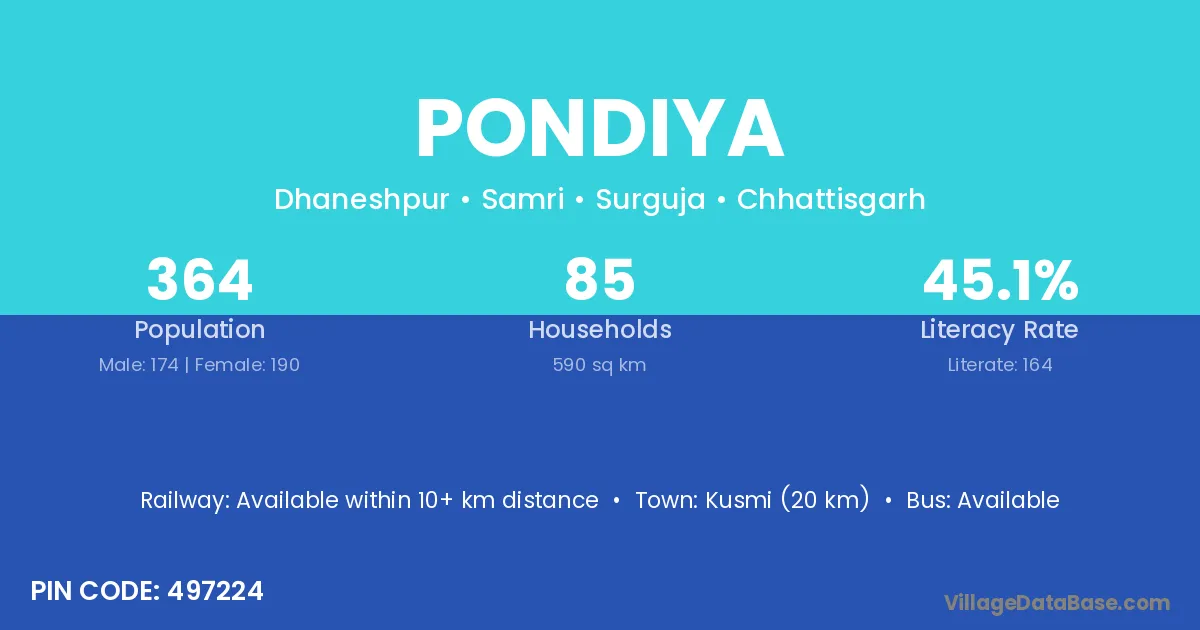Pondiya village is located in the Samri Tehsil of the Surguja district in Chhattisgarh .