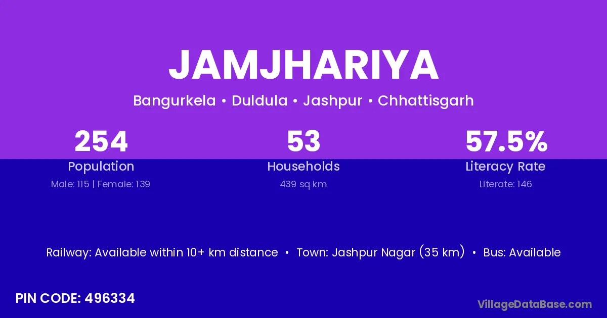 According to Census 2011 information, the village code of Jamjhariya village is 497114.