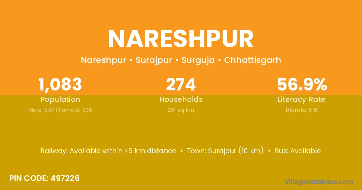 Nareshpur village has a total population of 1,083 people, of which 547 are males and 536 are females.