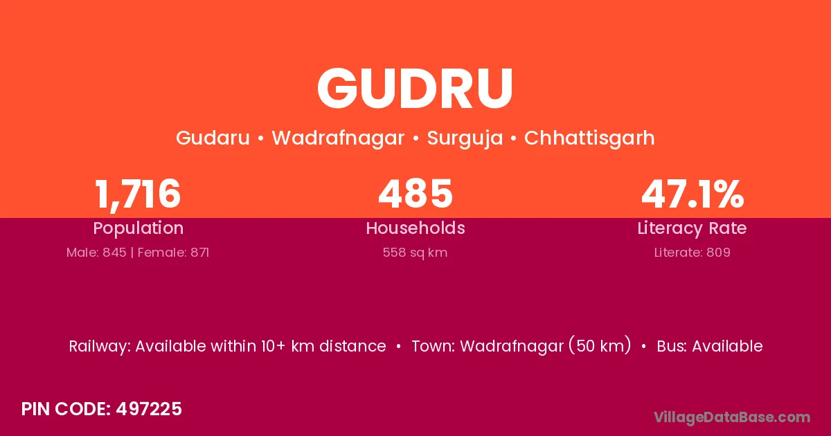 Gudru village is located in the Wadrafnagar Tehsil of the Surguja district in Chhattisgarh .