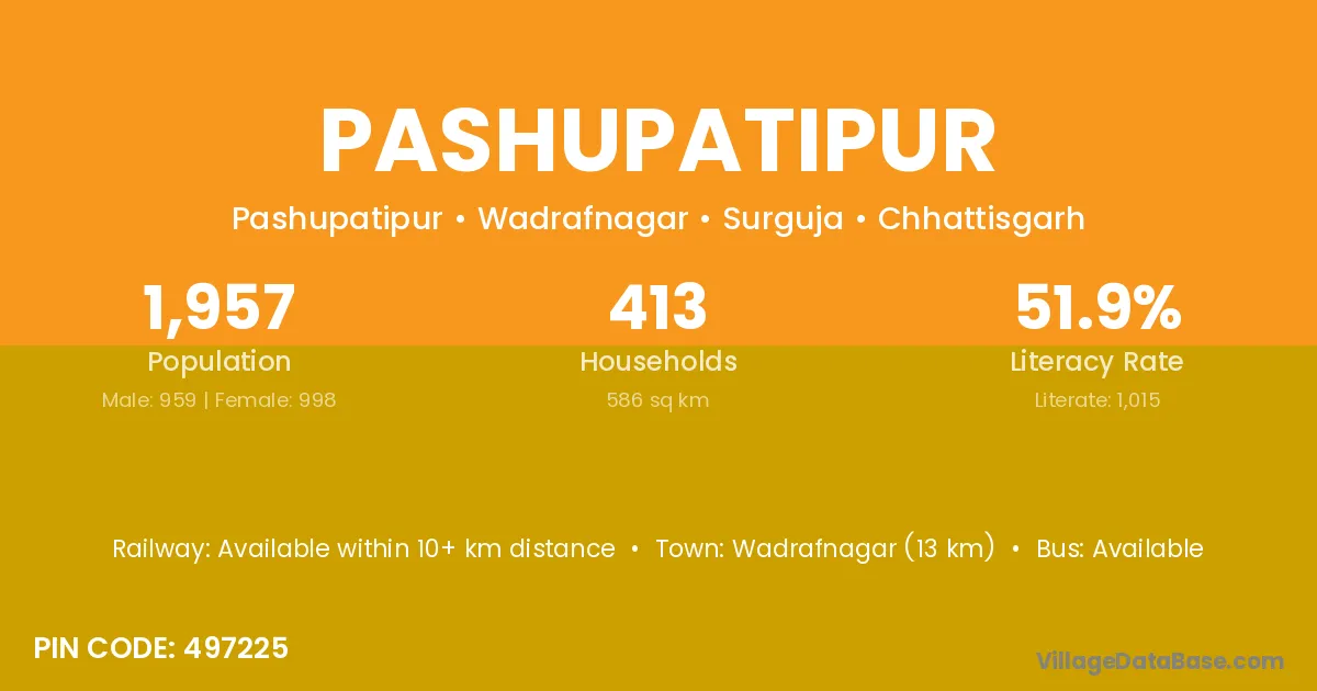 Wadrafnagar (13 km) is the nearest town to Pashupatipur village for major economic activities and is located approximately 13 km away.