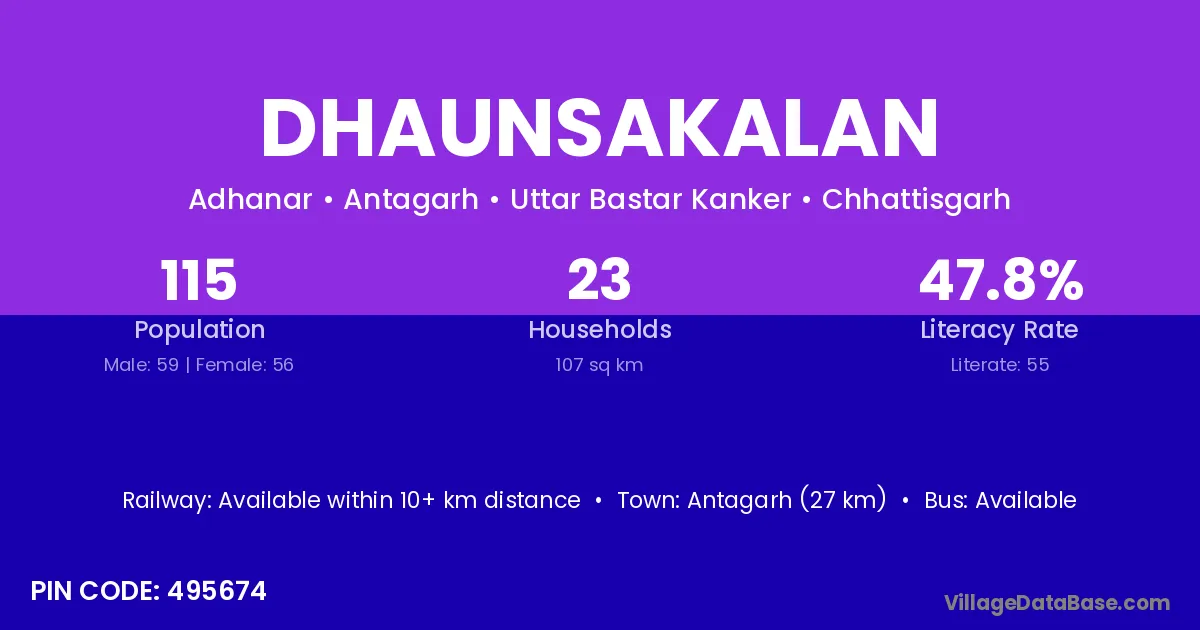 Dhaunsakalan village has a total population of 115 people, of which 59 are males and 56 are females.