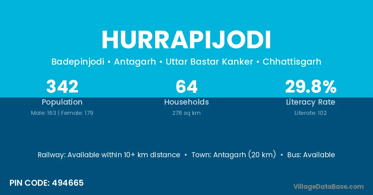 Hurrapijodi village has a total population of 342 people, of which 163 are males and 179 are females.