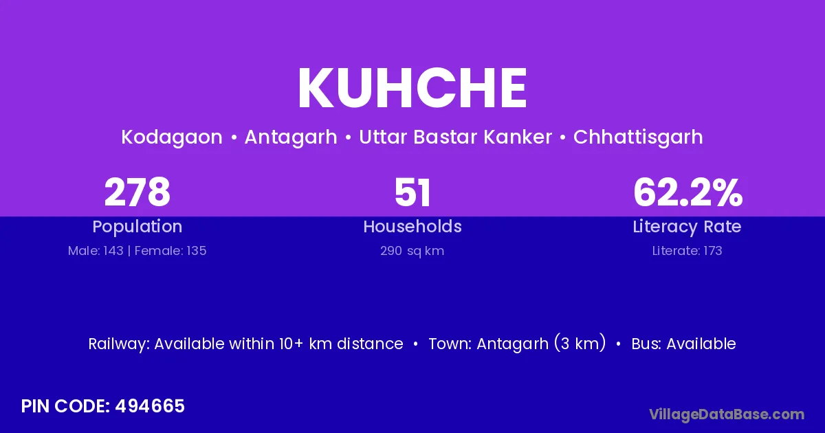 According to Census 2011 information, the village code of Kuhche village is 494665.