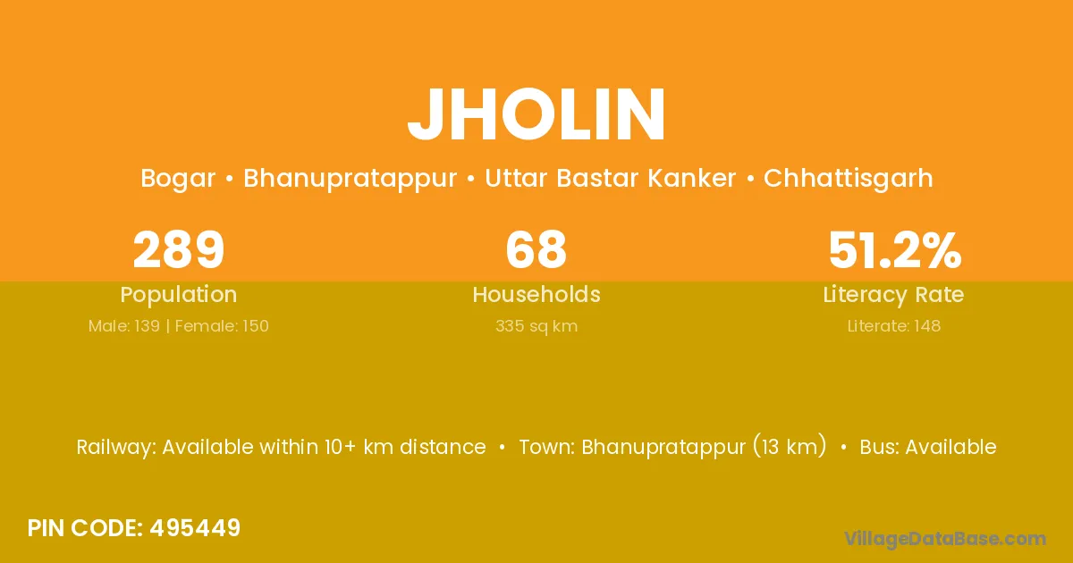 According to Census 2011 information, the village code of Jholin village is 495449.