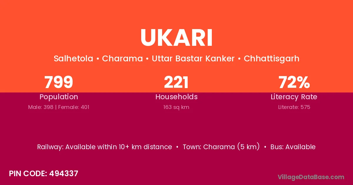 According to Census 2011 information, the village code of Ukari village is 494337.