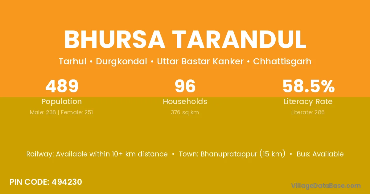According to Census 2011 information, the village code of Bhursa Tarandul village is 494230.