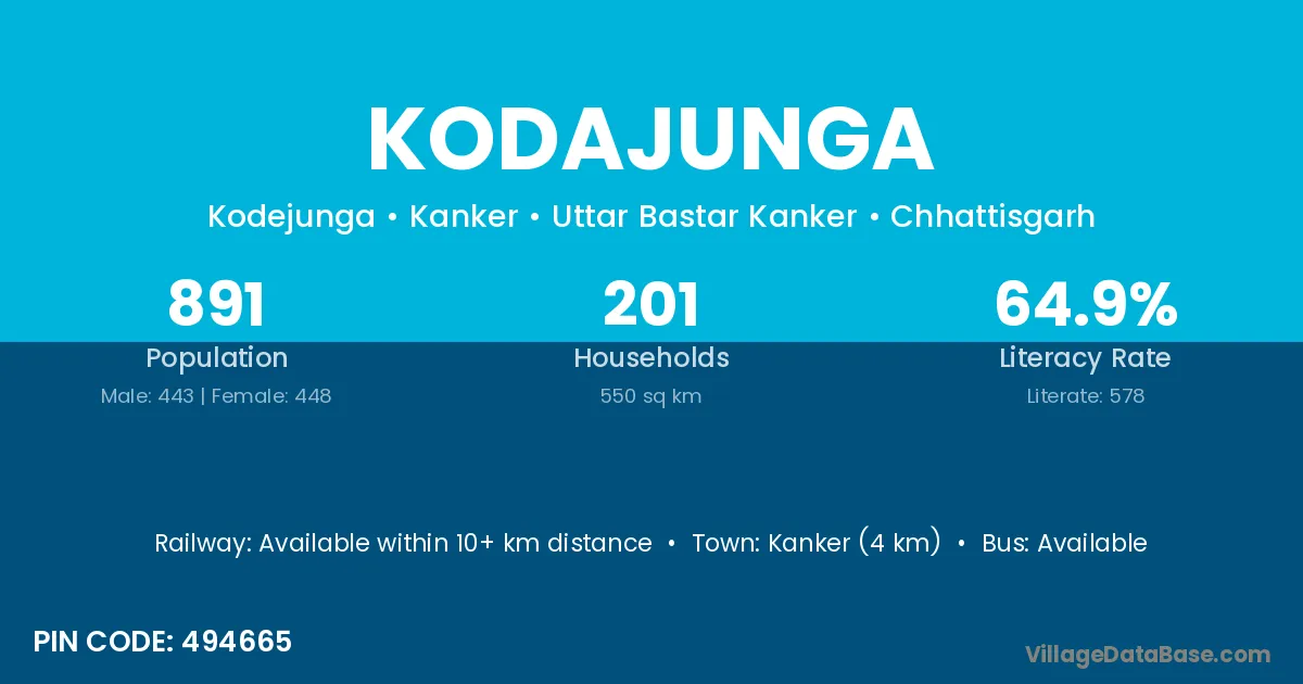 Kanker (4 km) is the nearest town to Kodajunga village for major economic activities and is located approximately 4 km away.