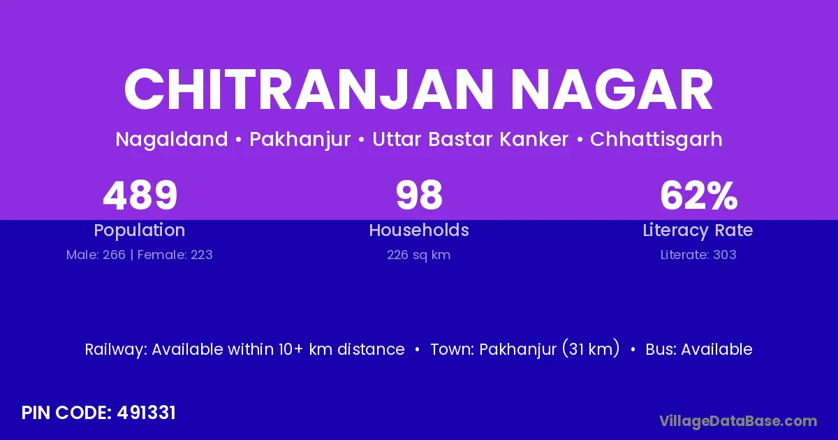 Chitranjan Nagar village has a total population of 489 people, of which 266 are males and 223 are females.