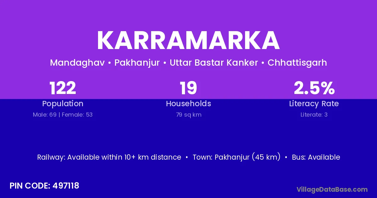 Pakhanjur (45 km) is the nearest town to Karramarka village for major economic activities and is located approximately 45 km away.