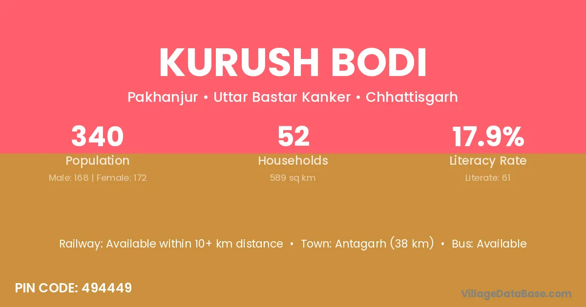 According to Census 2011 information, the village code of Kurush Bodi village is 494449.