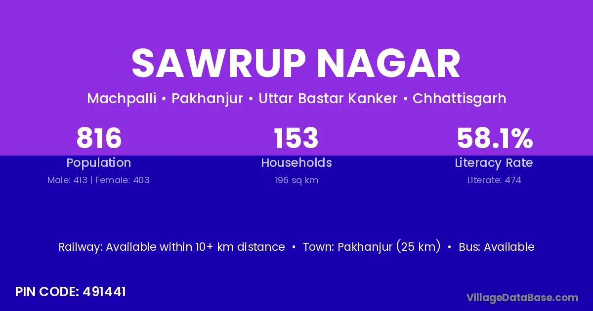 Pakhanjur (25 km) is the nearest town to Sawrup Nagar village for major economic activities and is located approximately 25 km away.