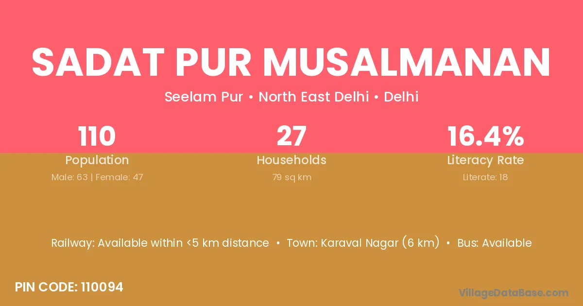 Sadat Pur Musalmanan village has a total population of 110 people, of which 63 are males and 47 are females.