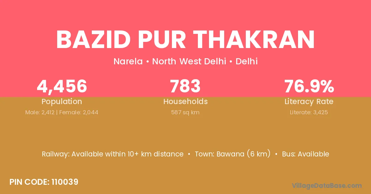 Bawana (6 km) is the nearest town to Bazid Pur Thakran village for major economic activities and is located approximately 6 km away.