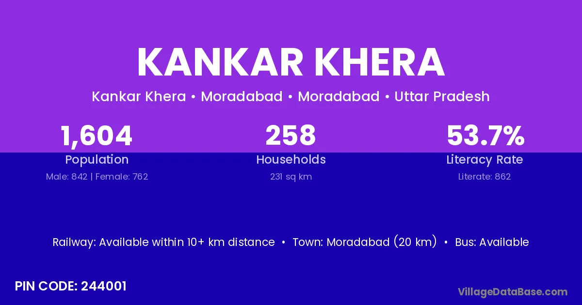 The literacy rate of Kankar Khera village is 63.79%. Male literacy stands at 71.43% and female literacy at 54.72%.