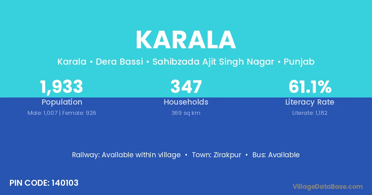 Saraswati Vihar is the nearest town to Karala village for major economic activities