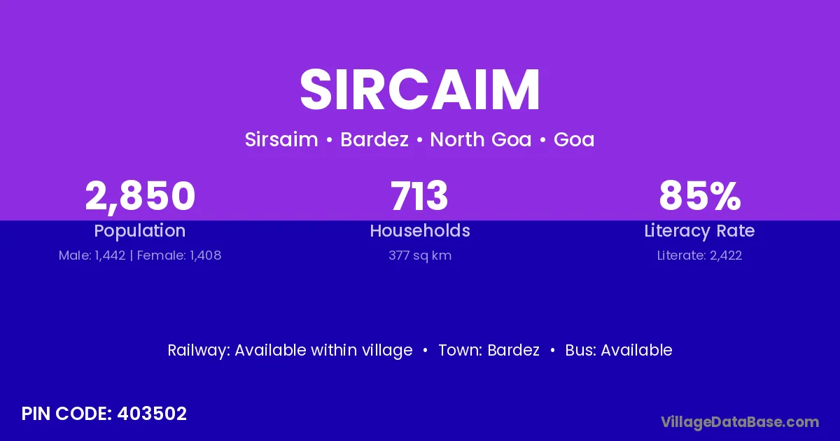 According to Census 2011 information, the village code of Sircaim village is 403502.
