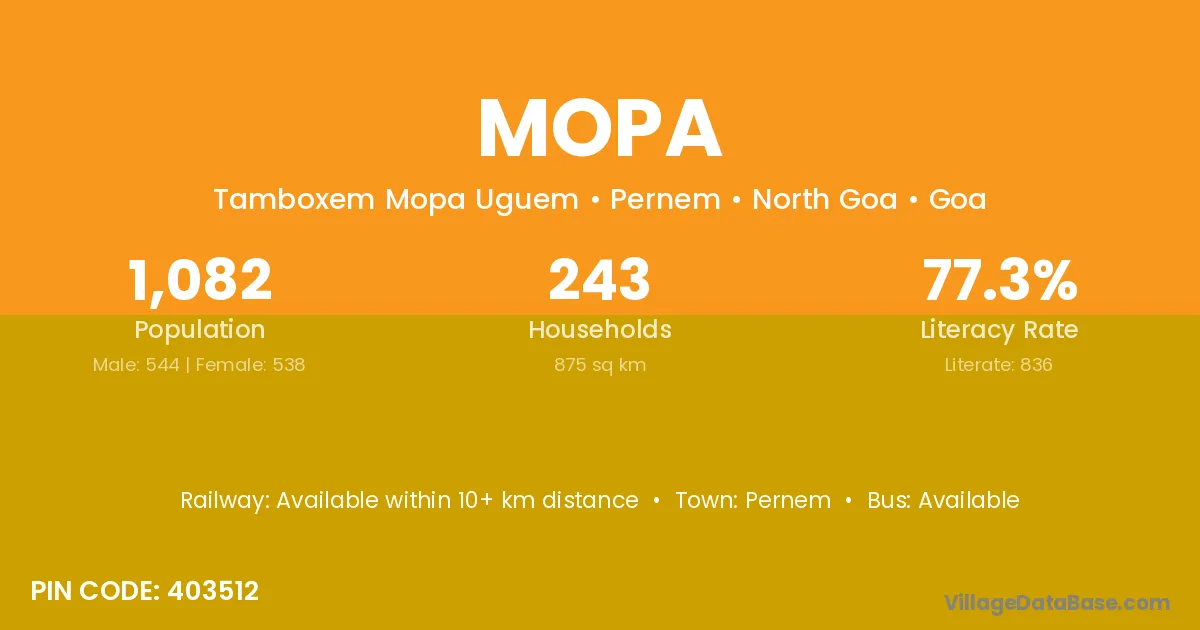 According to Census 2011 information, the village code of Mopa village is 403512.