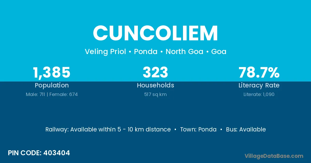 Ponda is the nearest town to Cuncoliem village for major economic activities