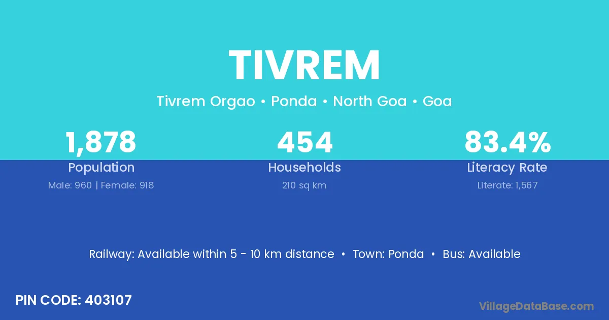 Ponda is the nearest town to Tivrem village for major economic activities