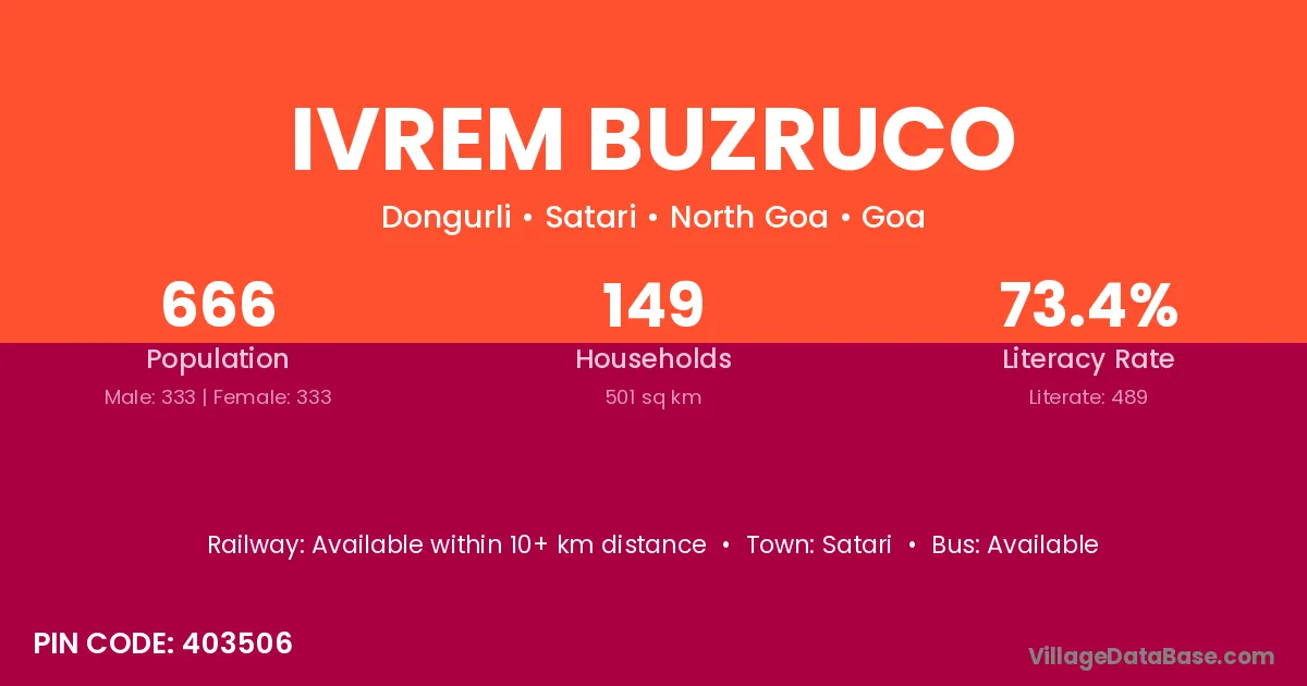 Ivrem Buzruco village is located in the Satari Taluka of the North Goa district in Goa .