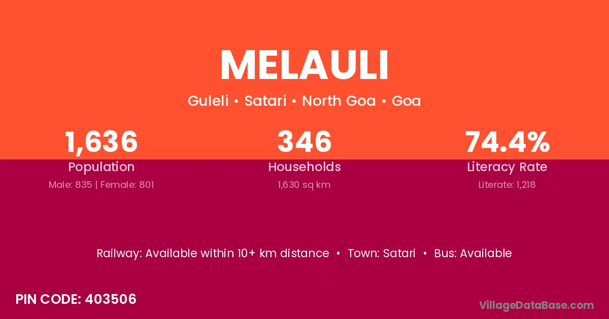 Melauli village has a total population of 1,636 people, of which 835 are males and 801 are females.